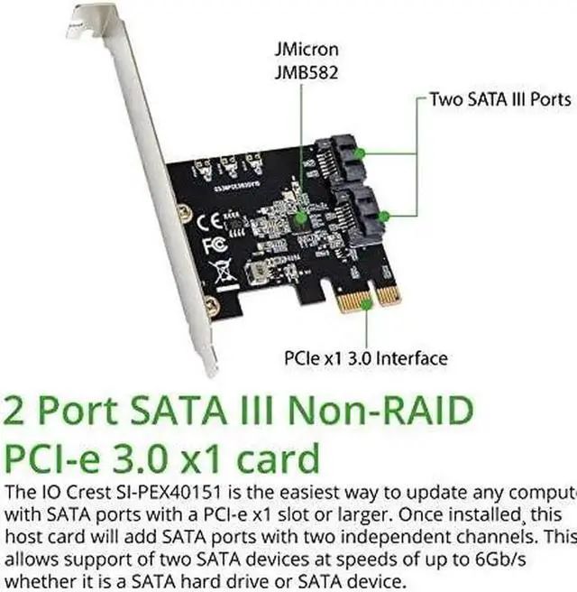 Vszerda 2 Port SATA III PCI-e 3.0 x1 Non-RAID Controller Card Jmicro Chipset SI-PEX40148