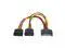 The SATA power splitter cable features a SATA male power connector that connects to a single computer power supply SATA connector and breaks out into two SATA female power connectors.