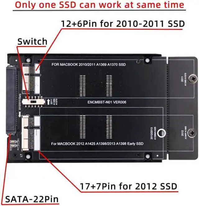 Can work for all 12+6pin and 17+7pin SSD.(from 2011 to 2013 early MAC SSD)