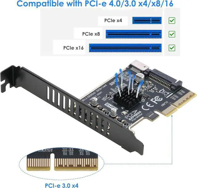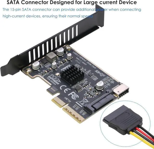 [Built-in 20Gbps Chipset With Heatsink] USB 3.2 Gen2x2 PCIe Adapter is equipped with the reliable ASMedia ASM3242 controller, total 20Gbps bandwidth. The advanced Heatsink will help the chipset working in lower temperature, avoid having any issues with reliability due to overheating