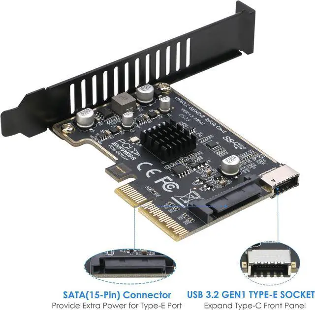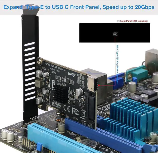Easy to install: PCIe x4 to Type-E Host Internal card can be inserted to PCIe slot on MB, the extra SATA power connector is not necessary, can be connected When connecting power-hungry devices to your front panel. Please Note: The card can not be connected with any External USB Device directly, You may have USB C Type-E Front Panels to work with it together
