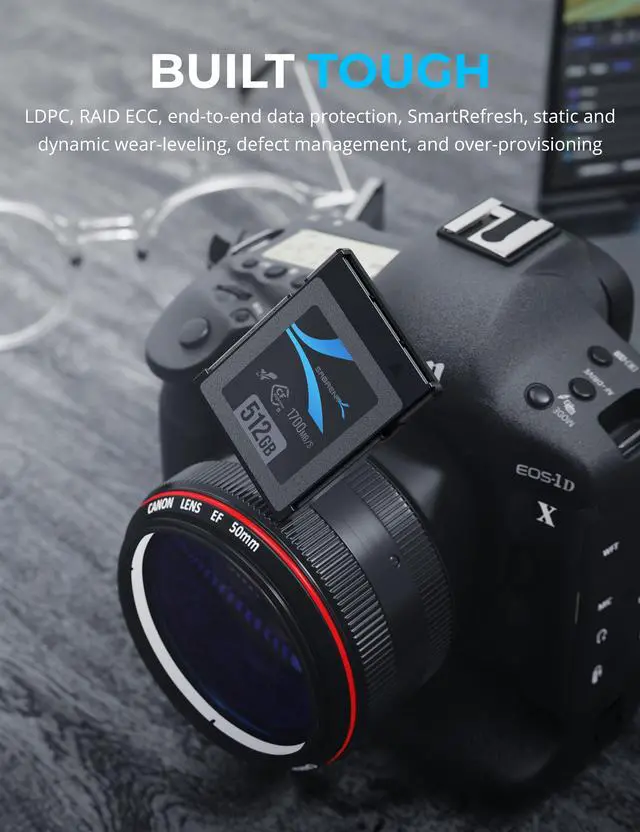 A card you can depend on: Adopting various advanced flash management techniques including LDPC and RAID error correction, end-to-end data protection, wear-leveling, defect management, and over-provisioning,