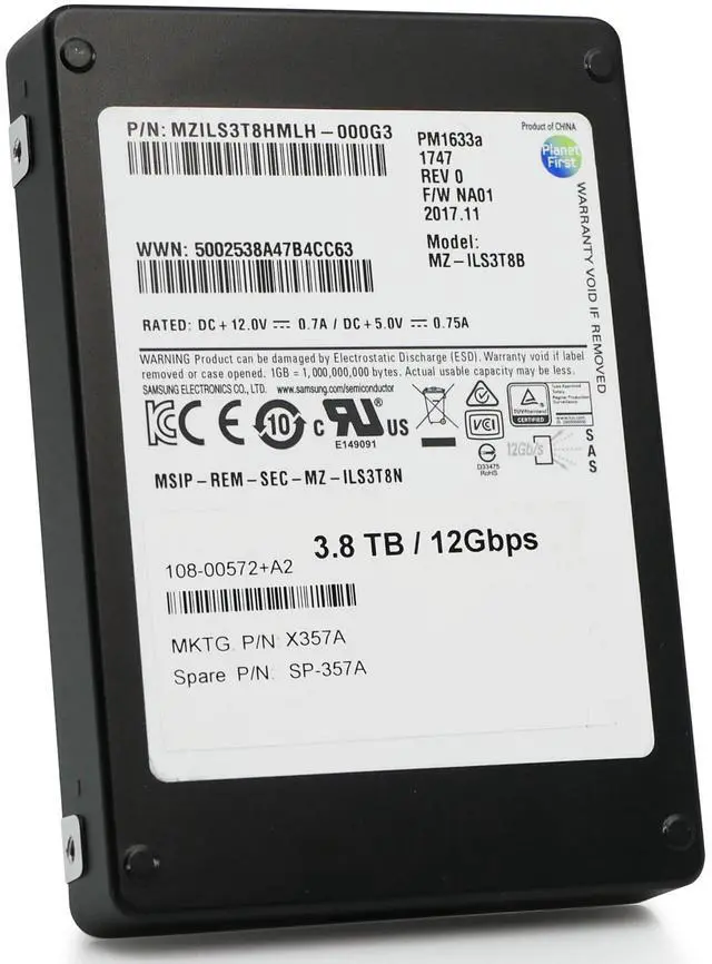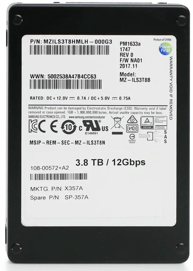 • Product Name : Samsung MZ-ILS3T8N MZILS3T8HMLH-000C3 PM1633a Series 3.8TB Internal Solid State Drive