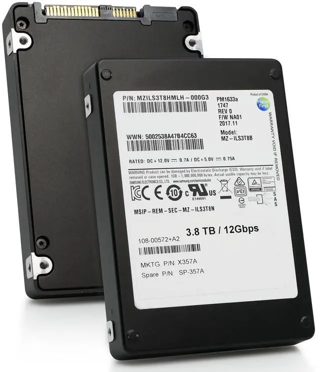 Samsung MZ-ILS3T8N MZILS3T8HMLH-000C3 PM1633a Series 3.8TB Internal Solid State Drive - 2.5 -inch - SAS 12.0 Gbps - Triple-level Cell (TLC)