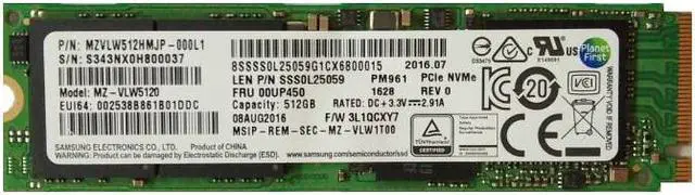 Lenovo Samsung 512GB SSD MZ-VKW512 SM961 G3 M.2 PCI-E x4 MZVKW512HMJP-000L7 00UP440
