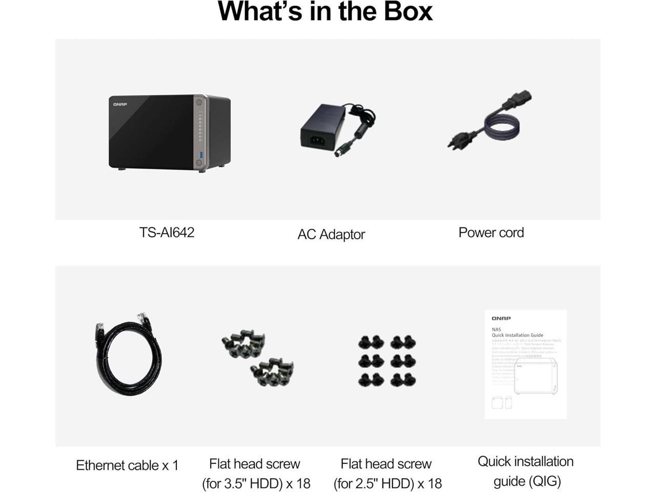 QNAP TS-AI642 6 Bay AI NAS with a Power-efficient ARM Processor and NPU for AI-Powered Video and Image Recognition Applications (Diskless)