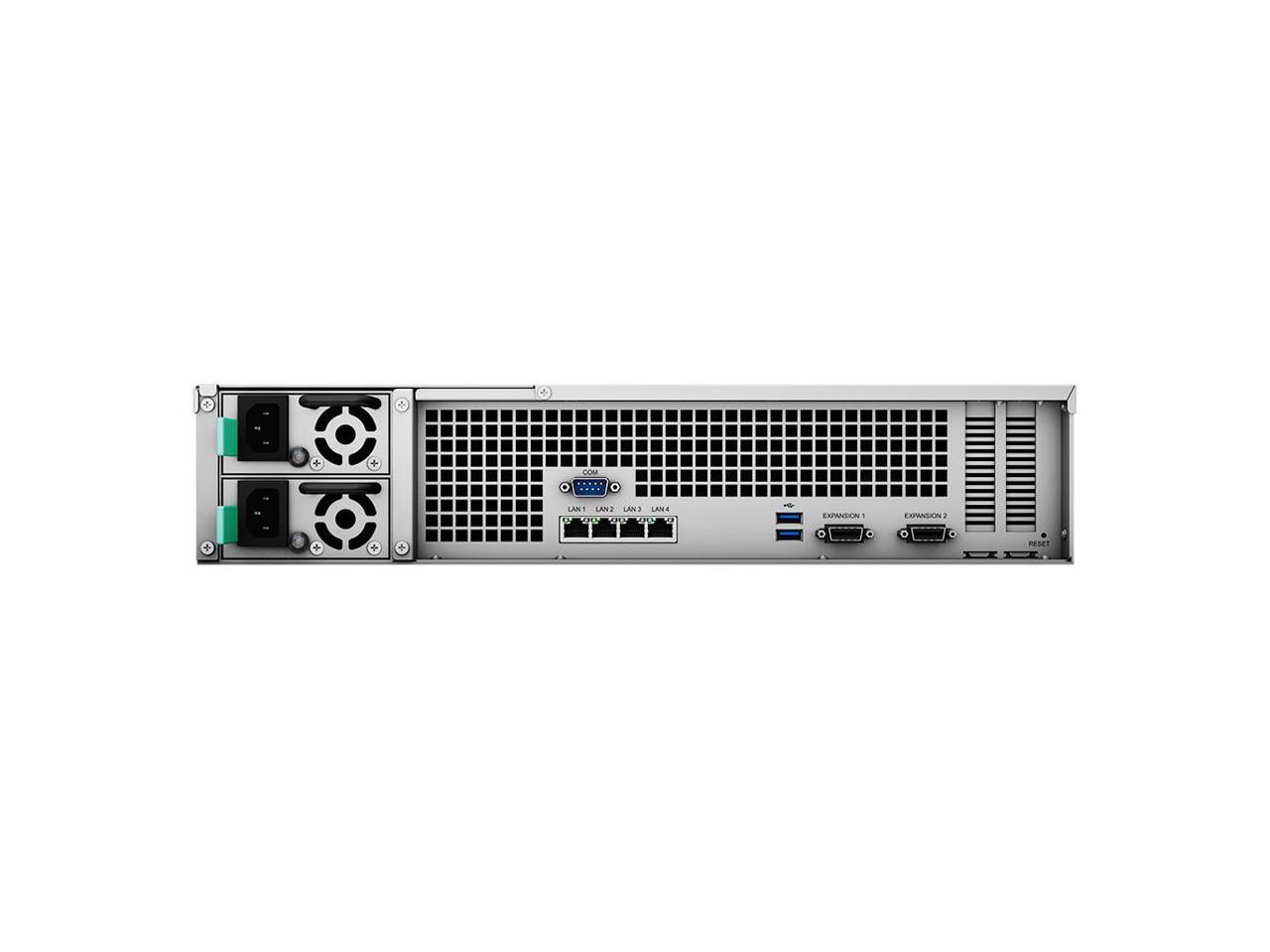 Xeon D-1541 8-Core 2.1GHz CPU, Up To 2.7GHz Turbo; 64GB DDR4 ECC UDIMM Memory; 144TB (12 x 12TB) SATA 3.5" HDDs for High-Capacity Storage; 4 x RJ-45 1GbE LAN Ports and 2 x RJ-45 10GbE LAN Ports (both with Link Aggregation / Failover support); 2 x USB 3.2 Ports; 2 x Expansion Ports; Btrfs File System for Advanced LUN iSCSI Service