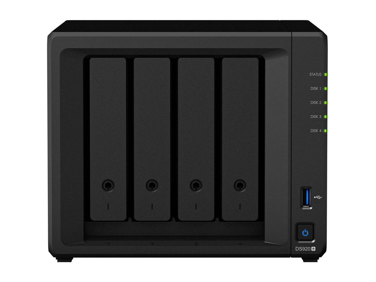Synology DiskStation DS920+ NAS Server with Celeron 2.0GHz CPU, 8GB Memory, 72TB HDD Storage, 1TB M.2 NVMe SSD, 2 x 1GbE LAN Ports, DSM Operating System
