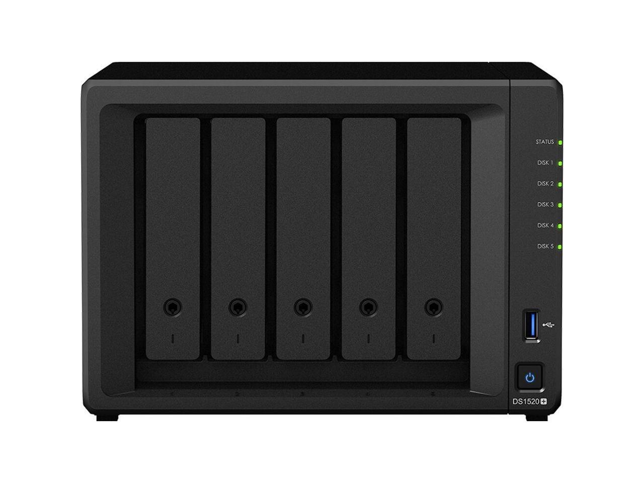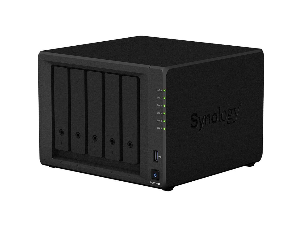 Synology DiskStation DS1520+ NAS Server with Celeron 2.0GHz CPU, 8GB Memory, 60TB HDD Storage, 1TB M.2 NVMe SSD, 4 x 1GbE LAN Ports, DSM Operating System