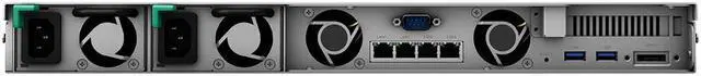 Ports: 4 x RJ-45 1GbE LAN Ports (with Link Aggregation / Failover support); 2 x USB 3.2 Ports; 1 x eSATA Port