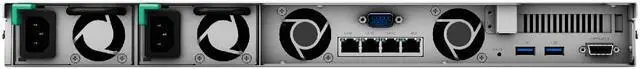Ports: 4 x RJ-45 1GbE LAN Ports (with Link Aggregation / Failover support); 2 x USB 3.2 Ports; 1 x Expansion Port; Btrfs File System for Advanced LUN iSCSI Service