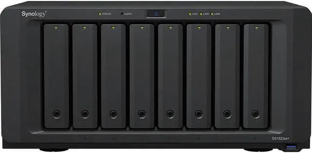 • Synology DiskStation DS1823xs+, made for a variety of server roles for a flexible all-in-one solution for large-scale file storage, data sharing and backup, synchronization, surveillance, and multimedia streaming. Powerful, high-capacity, versatile storage that fits in any environment. An ideal solution for individuals and small to medium-sized businesses seeking a reliable and scalable storage solution.