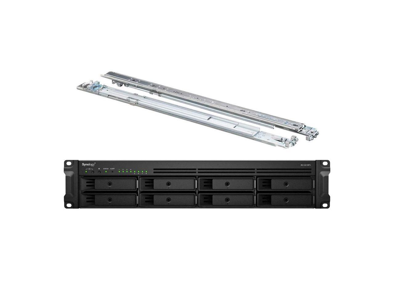 Synology RackStation RS1221RP+ NAS Server with Ryzen 2.2GHz CPU, 32GB Memory, 160TB HDD Storage, 4 x 1GbE LAN Ports, Redundant Power, DSM Operating System Bundle with Rail kit