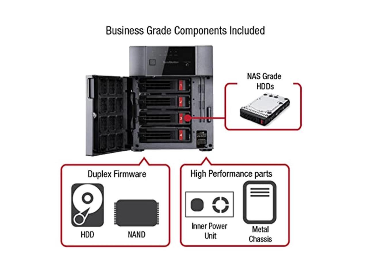 Reliable Business-Class NAS: Optimized to organize, share, and back up your important files. Closed OS for increased security. Pre-tested NAS-grade hard drives included – with RAID pre-configured - saving you time and effort. 16 TB – 4 drives included - ships in RAID 5 = 12 TB usable capacity. Set to RAID 6 for more redundancy, or RAID 0 for full 16 TB. Back up and share multiple PC, Mac, Android and iOS devices. Integrated Hybrid Cloud Backup / Sync with S3, Dropbox, Azure and OneDrive. | Made in Japan - Quality Devices. 3-year warranty (Includes HDD coverage) with 24/7 US-based support. (Additional options available.) Qualifies for Buffalo's Data Recovery Service when registered. Remote Management System: Manage multiple NAS from a single console. Annapurna Alpine Processor AL214 (1.4 GHz Quad-Core) with 1 GB DDR3 RAM.