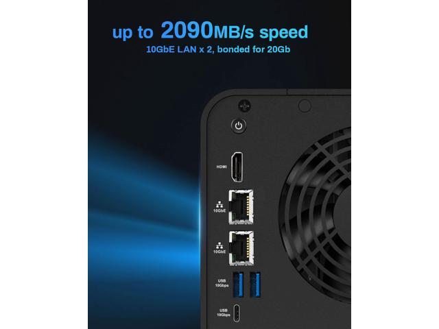 - 20Gbps High-Speed Data Transfer: Dual 10GbE Ethernet ports offer up to 20Gbps bandwidth, with linear writes up to 2090MB/s and 4K random read/write speeds up to 400MB/s, suitable for image, video workflows, and virtualization.