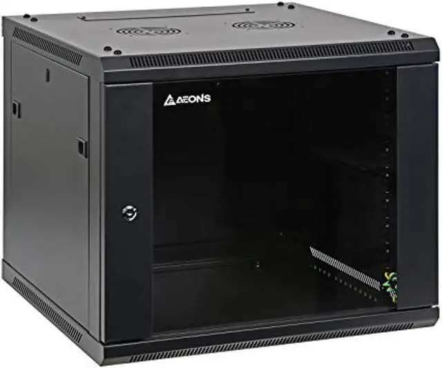 Dimensions: 20"H x 23.5"W x 23.5"D / Load Capacity: 132 lbs. / Fits all standard 19" rack mount devices up to 22" mountable depth Sturdy and rugged frame construction with reinforced lockable door for increased security. Features adjustable depth equipment mounting rails and brackets. Removable and reversible door and side panel; removable cable pass-through on both of top cover and bottom pane. Ships flat pack; Easy assembly required, including screw package and keys