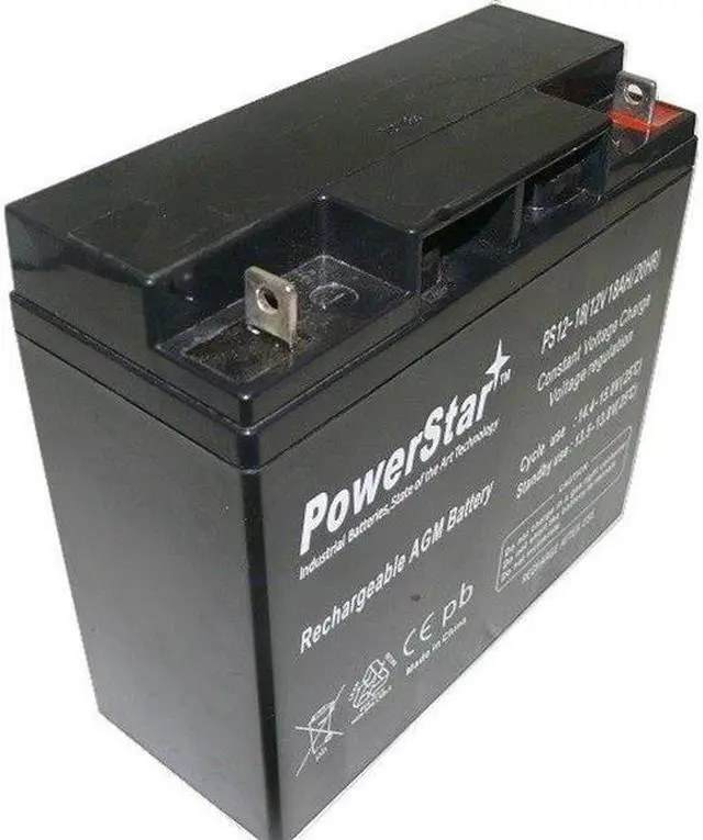 PowerStar battery general features Sealed Construction PowerStars's unique construction and sealing technique ensure that no electrolyte leakage can occur from the terminals or case of any PowerStar battery. This feature insures safe, efficient operation of PowerStar's batteries in any position. PowerStar batteries are classified as "Non-Spillable" and will meet all requirements of the International Air Transport Association. Absorptive Glass Mat System (AGM System) PowerStar batteries make use of fine mat separators (glass fiber) wherein suffient electrolyte is absorbed to provide the longest life and steady serive. This system prevents escape of electrolyte from the separator which causes leakage. Gas Recombination PowerStar batteries incorporated unique design that effectively controls generation of gas and allows recombination of over 90% of gas generated during the normal use. Maintenance-Free Operation During the expected floating service life of PowerStar batteries, there is no need to check the specific gravity of the electrolyte or add water, which means they require no maintenance service. In fact, there is no provision for these maintenance functions. Position-Free and Leakage-Free The combination of the sealed construction and the use of absorptive mat separators permit operation off PowerStar batteries in any position without loss of capacity, electrolyte and service life. 12Volt - 18AH Rechargeable Sealed Lead Acid Battery