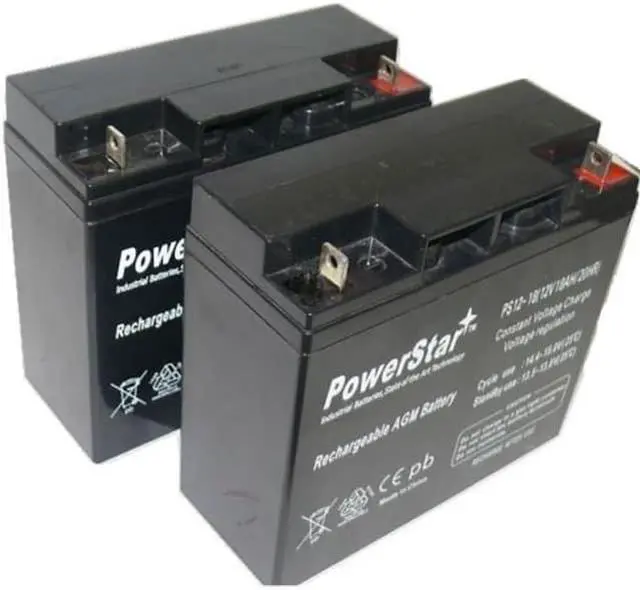 PowerStar battery general features Sealed Construction PowerStars's unique construction and sealing technique ensure that no electrolyte leakage can occur from the terminals or case of any PowerStar battery. This feature insures safe, efficient operation of PowerStar's batteries in any position. PowerStar batteries are classified as "Non-Spillable" and will meet all requirements of the International Air Transport Association. Absorptive Glass Mat System (AGM System) PowerStar batteries make use of fine mat separators (glass fiber) wherein suffient electrolyte is absorbed to provide the longest life and steady serive. This system prevents escape of electrolyte from the separator which causes leakage. Gas Recombination PowerStar batteries incorporated unique design that effectively controls generation of gas and allows recombination of over 90% of gas generated during the normal use. Maintenance-Free Operation During the expected floating service life of PowerStar batteries, there is no need to check the specific gravity of the electrolyte or add water, which means they require no maintenance service. In fact, there is no provision for these maintenance functions. Position-Free and Leakage-Free The combination of the sealed construction and the use of absorptive mat separators permit operation off PowerStar batteries in any position without loss of capacity, electrolyte and service life. 12V 18AH SLA Battery replaces ub12180 gp12170 np18-12 51814 np17-12 - 2PK