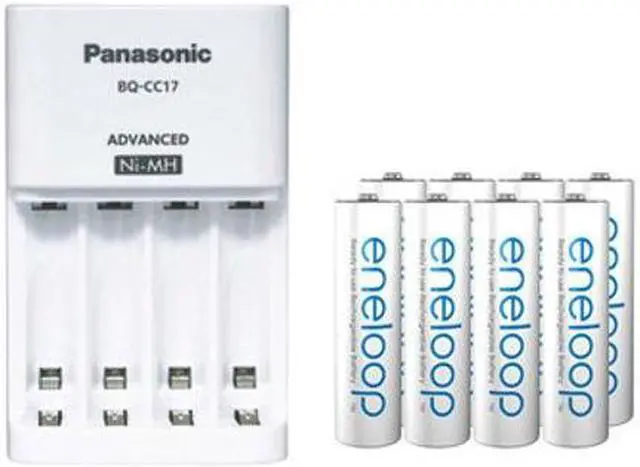 • Panasonic BQ-CC17 Smart Battery Charger + 8 AA (2000mAh) Panasonic Eneloop Rechargeable Batteries