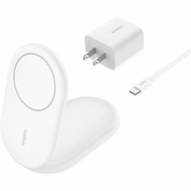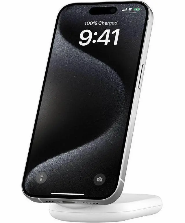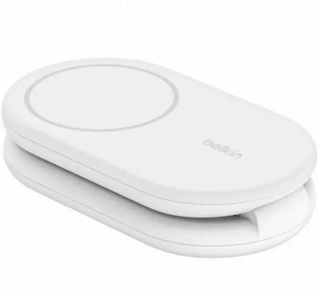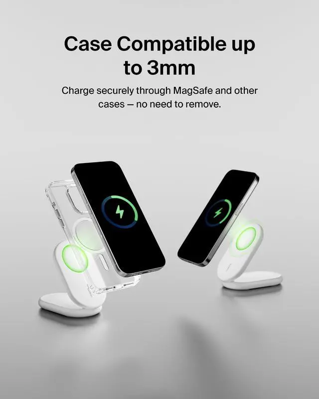 Fast charge with the latest Qi2 technology. Conveniently place your phone on this Qi2 wireless charger to fast charge your iPhone or Qi2 compatible device up to 15W. With Qi2, you get up to 2x faster wireless charging** so you can spend less time waiting! MagSafe compatible. Get fast, wireless charging for iPhone 15/14/13/12 and Qi2 devices that are coming soon. The powerful magnetic attachment assures a strong connection. Stand or pad charging. Our versatile Qi2 wireless charger is engineered with a durable hinge to be used as a stand or lay flat as a pad.
