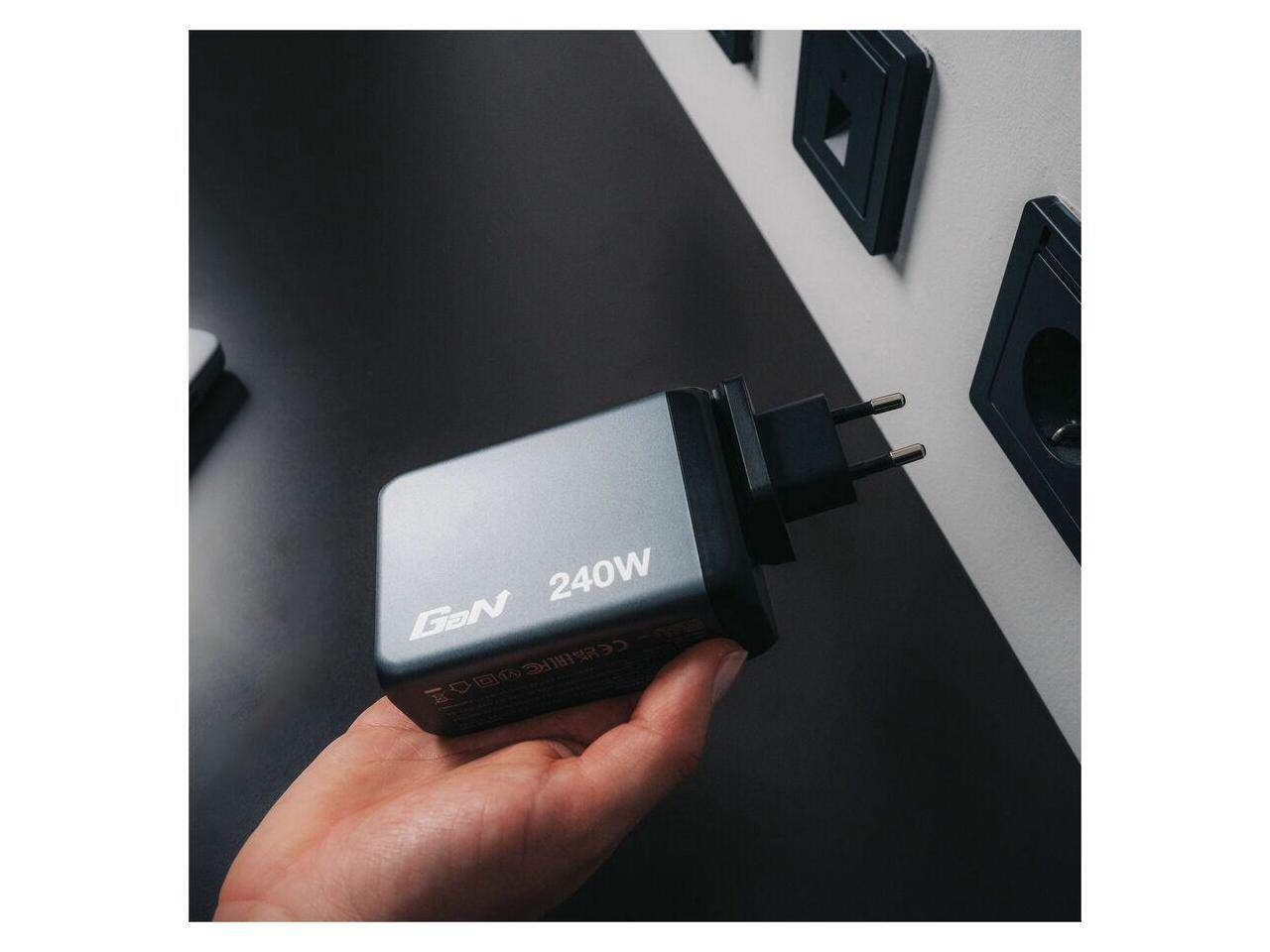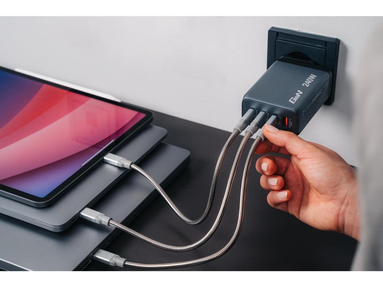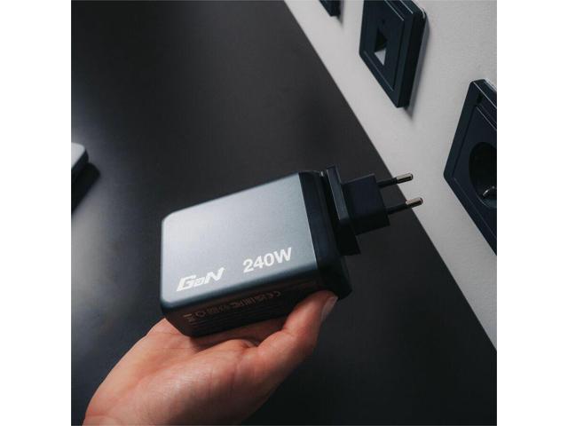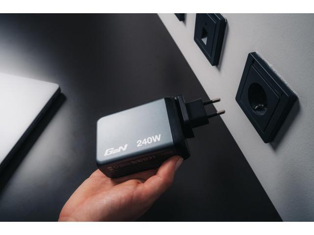 - Supports charging of up to four devices simultaneously with a maximum total output of 240 W.