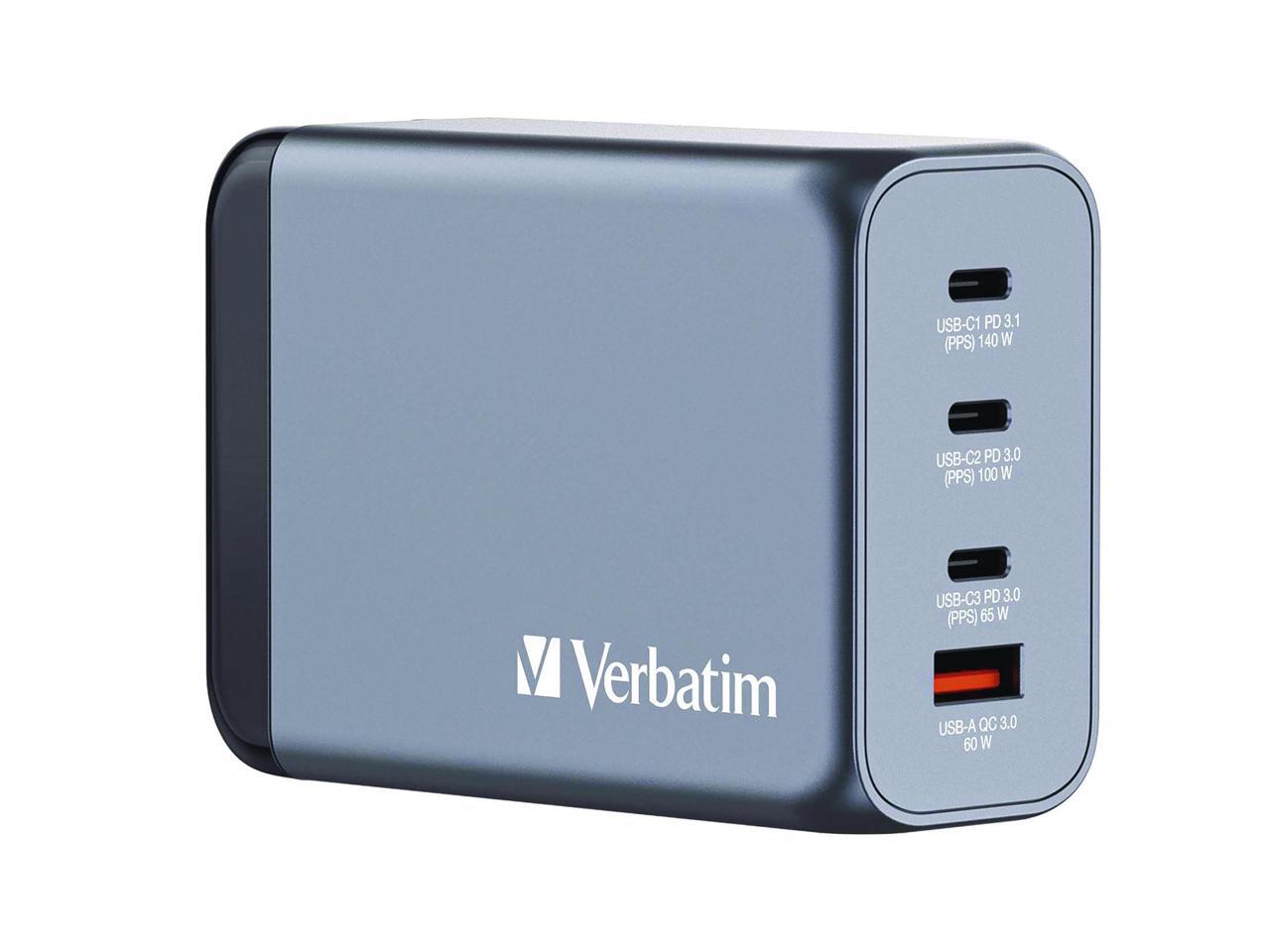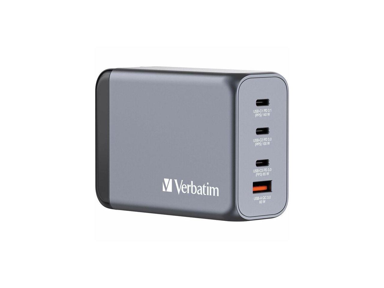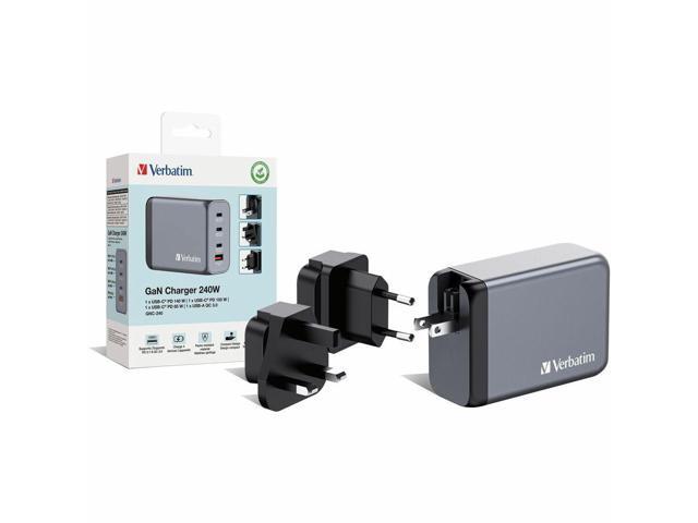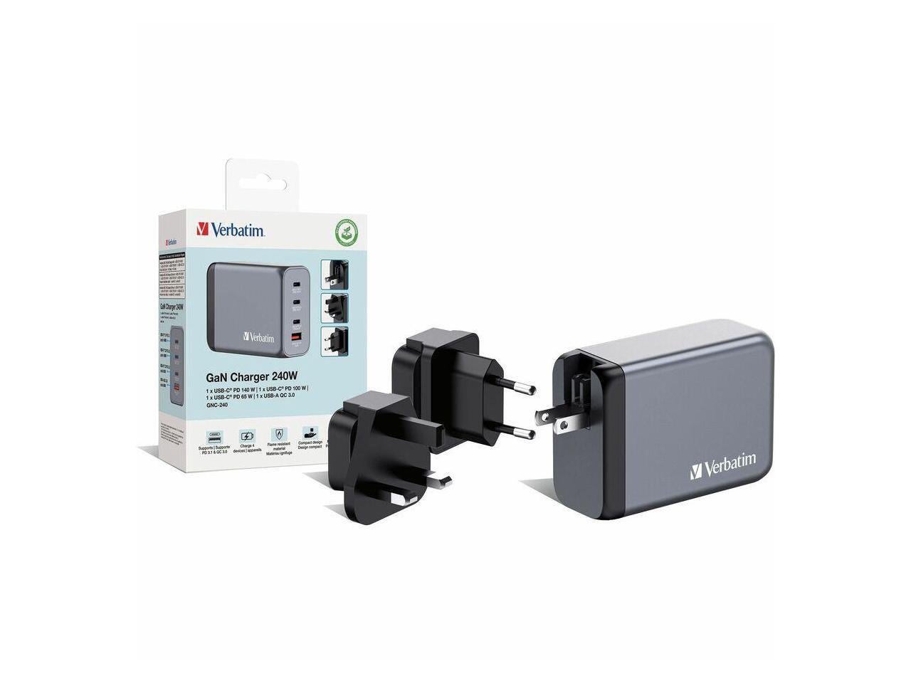 Verbatim 32205 240W 4-Port GaN Wall Charger - 240 W - 120 V AC, 230 V AC Input - 5 V DC, 9 V DC, 12 V DC, 15 V DC, 20 V DC, 28 V DC Output - 5 A - Black/Gray