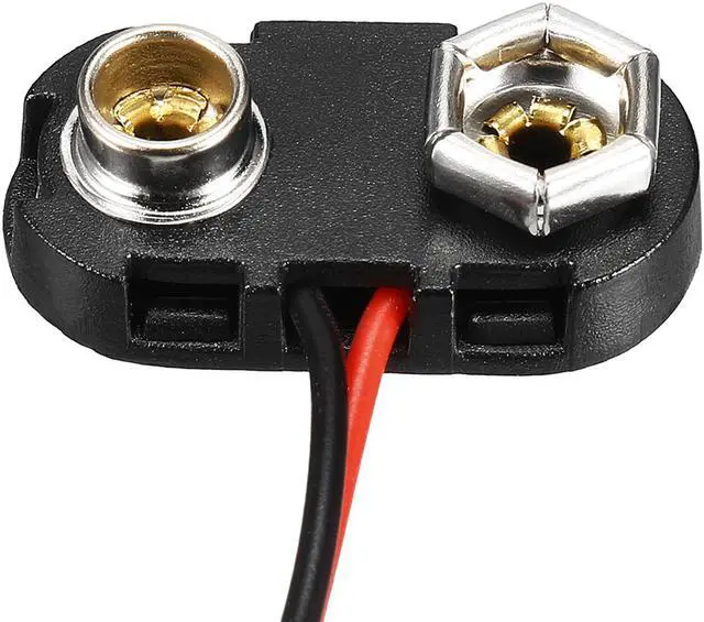 • Fit for: 9V Battery; Buckle Size: 24 x 12 x 7.5mm / 0.94" x 0.47" x 0.3" (L*W*H);9V battery clip connector, T-type plastic shell, 2 wire connector.