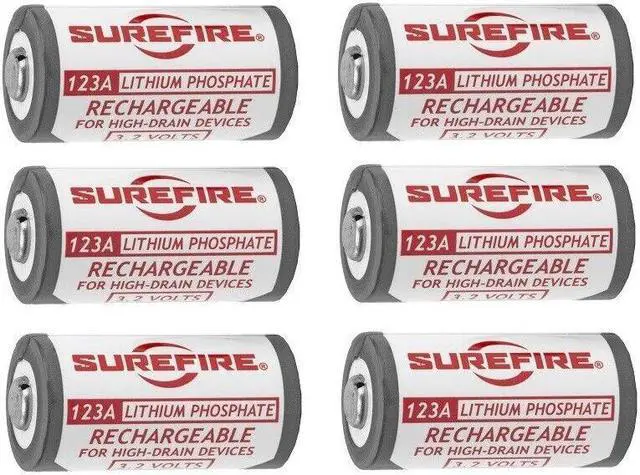 Surefire LFP123 3.2V Battery Rechargeable for High Drain Devices White SFLFP123 6-pack