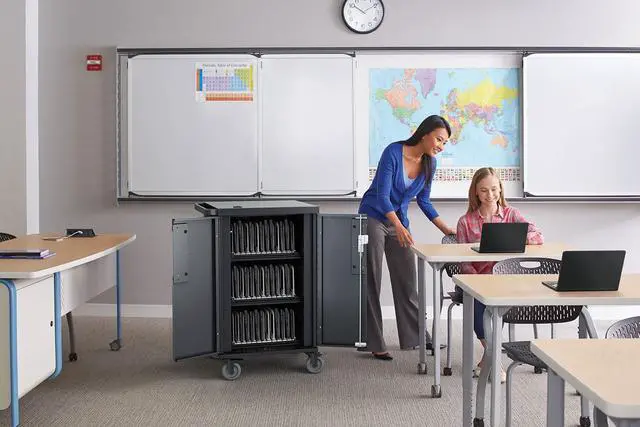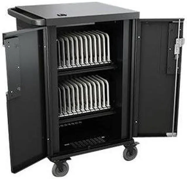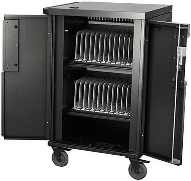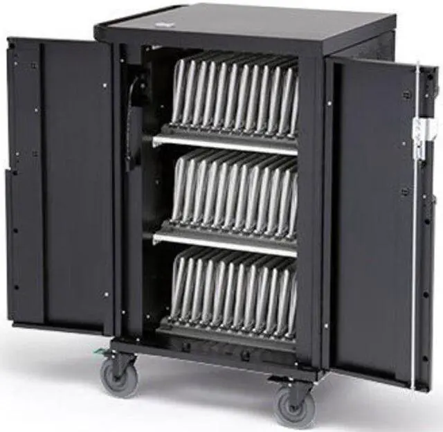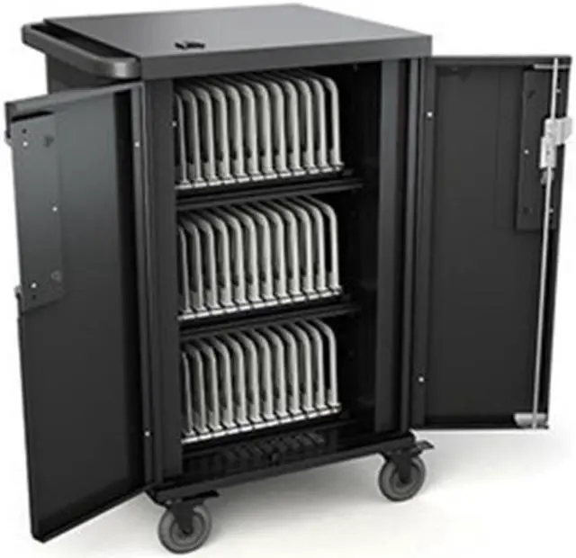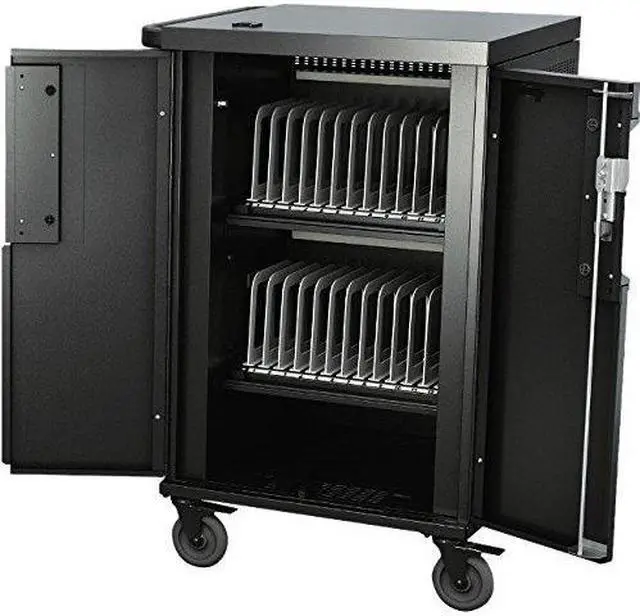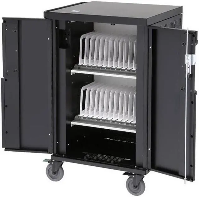 Designed to accommodate larger mobile devices, the Bretford Core X TCOREX24 Charging Cart features adjustable slot dividers and our most innovative digital timer power management system yet. Each shelf can support 10-12 devices while interchangeable numbering bars keep devices organized. Adjustable dividers allow modification of slot size from 1.25 -inch to 1.5 -inch to support various sizes of devices. Cable hooks help keep your devices and power cords in the right slot.