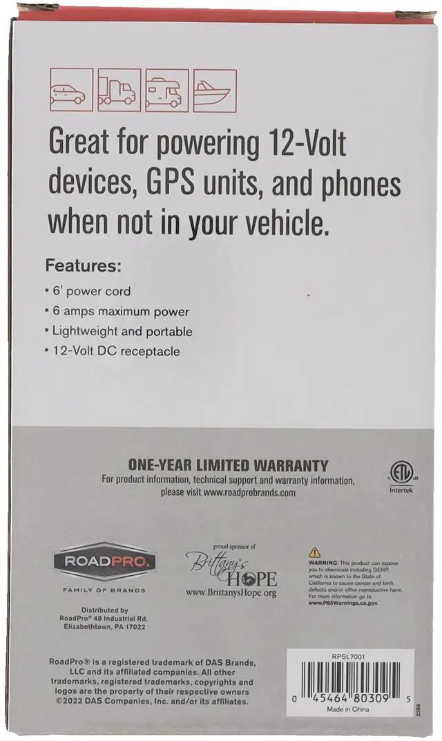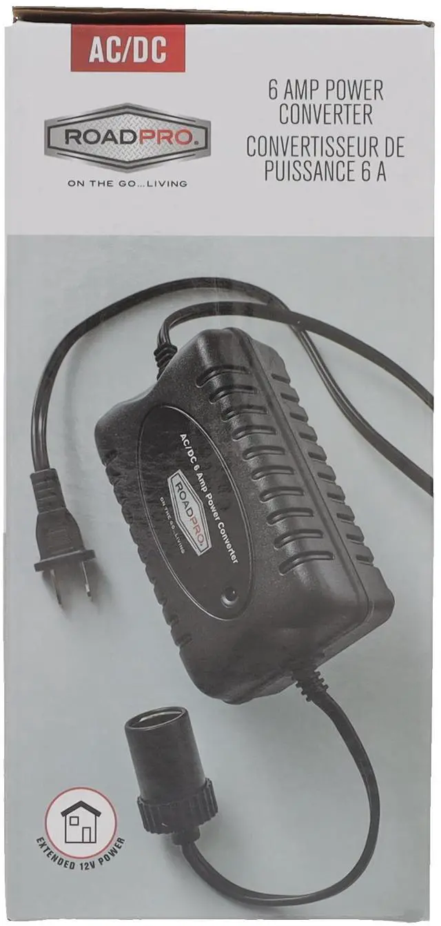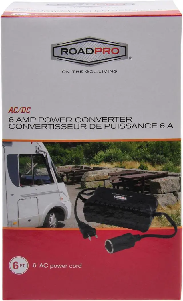ROADPRO R RPSL7001 AC TO DC CONVERTER 6 AMP6 foot power cord 6 amps maximum power Lightweight and portable 12-Volt DC receptacle