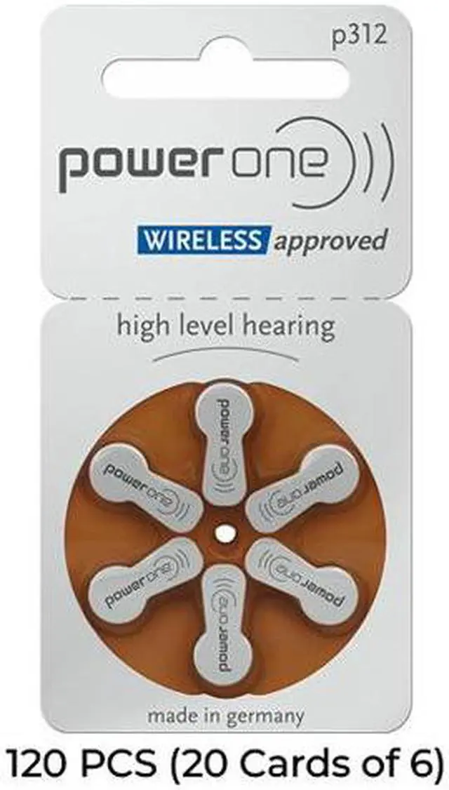 • 120-Pack Size P312 PowerOne Hearing Aid Batteries (20 Cards of 6)
