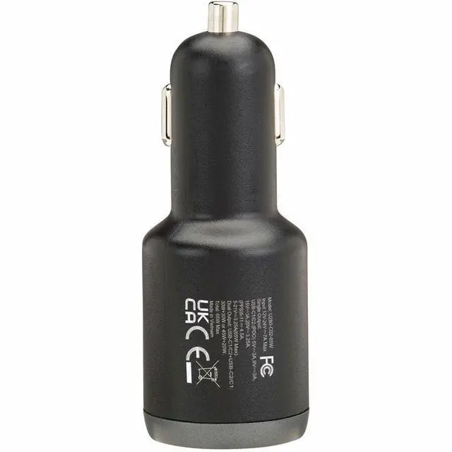 USB Car Charger Safely Charges 2 Mobile Devices in Your Vehicle SimultaneouslyThis dual-port USB car charger with Power Delivery (PD) 3.1 and Programmable Power Supply (PPS) technology lets you quickly and safely charge two USB mobile devices at the same time. You and a passenger can connect your smartphones, laptops, tablets, handheld game consoles or e-readers to ensure satisfactory battery charge when you reach your destination. A Combined 65W of Charging Power Feeds Your Power-Hungry DevicesWhen used together, the two USB-C ports support up to 65W of charging power combined (30W + 30W or 45W + 20W).