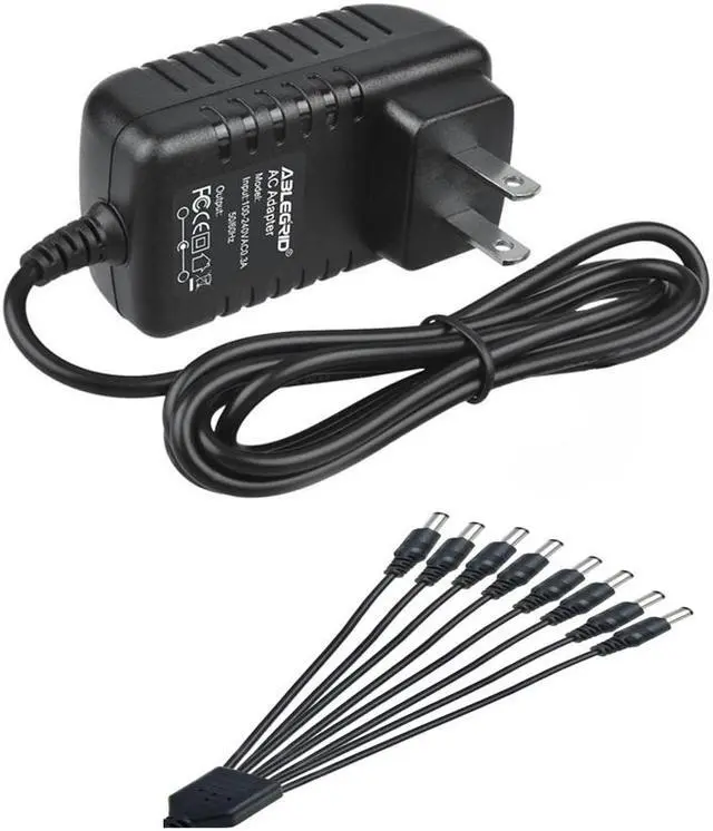 ABLEGRID 1 to 8 Splitter Conncetor 12V 2000mA + AC Adapter for Secuirty CCTV Camera DVR Switching Power Lead Battery