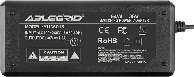 • 100% Brand New, High Quality Power Charger/Adapter ( Non-OEM ).ABLEGRID products are CE/FCC/RoHS certified.100% compatibility with the original.Over Voltage Protection, Over Heat Protection