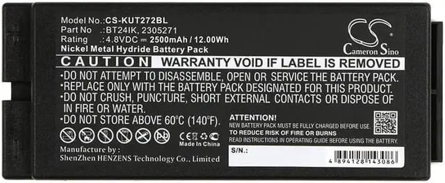 BT27iK Capacity: 4.8V 2500mAh / 12.00W h