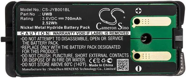 Battery Part Numbers UWB Capacity: 3.6V 700mAh / 2.52W h