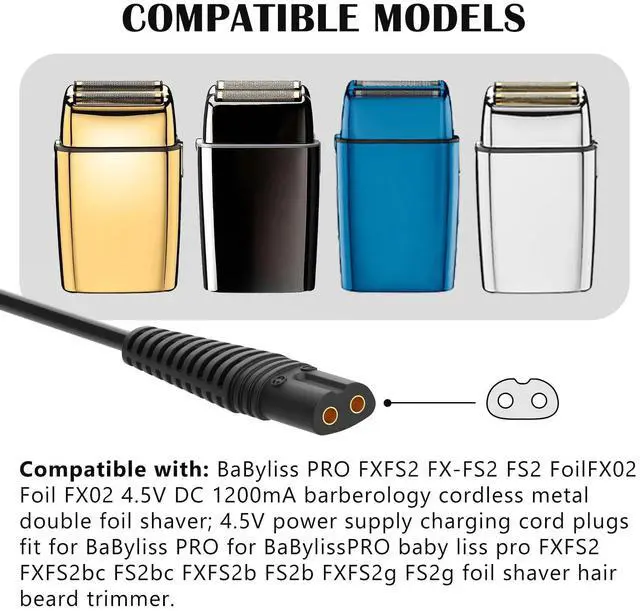 Charger Replacement for BaBylissPRO Barberology Cordless Metal Double Foil Shaver FXFS2/ FOILFX02 /FXFS2G /FXFS2B /FXFS2S /FXFS2R /FXFS2RG /FXFS2W /FXFSCORD, Only Fits BaBylissPRO FXFS2 (FOILFX 02).