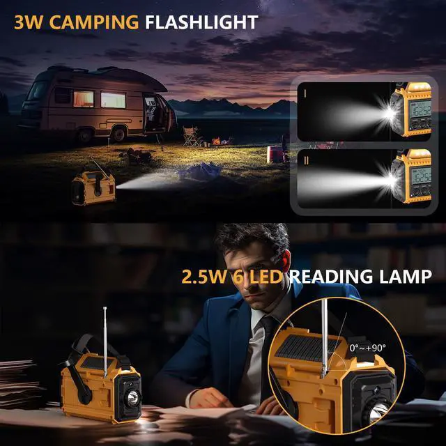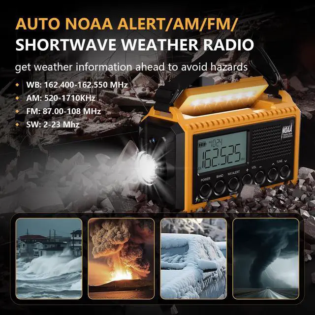 If the National Weather Service posts a severe weather alert, the emergency radio is powered on or in standby mode, it will automatically alert loudly for 9 seconds with the red light flashes. Afterward, the radio will continue broadcasting the weather information, and stay informed even without constantly monitoring weather forecasts, this ensures you never miss an alert while sleeping, especially during severe weather.