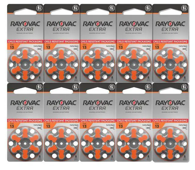 The Rayovac Extra (also known as Rayovac Extra Advanced) size 13 battery is a mercury-free zinc-air cell designed for high-performance hearing aids. It features "Active Core Technology," which optimizes the internal cell design to maximize capacity and provide stable power for high-drain activities like wireless streaming.