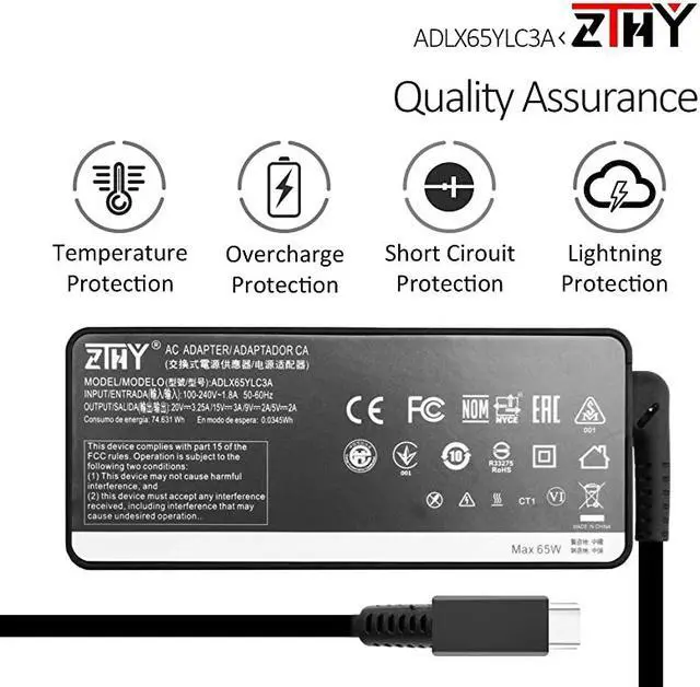Output: 20V- 3.25A / 15V-3A / 9V-2A / 5V-2A, 65W.