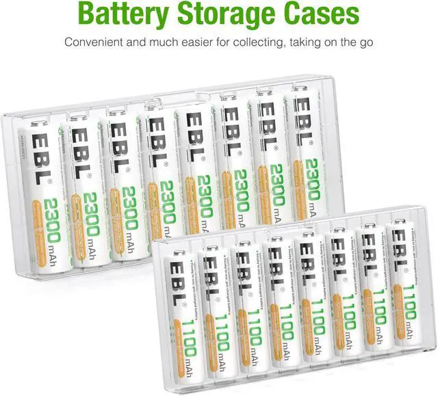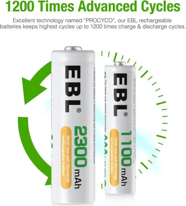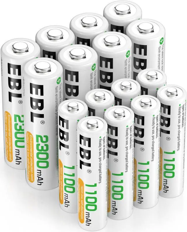 EBL 8-Pack AAA AA Rechargeable Batteries: Capacity: AA 2300mAh / AAA 1100mAh Voltage: 1.2V Battery type: Ni-MH Up to 1000 recharge cycles Package Contents: 8x EBL 2300mAh Rechargeable AA Batteries 8x EBL 1100mAh Rechargeable AAA Batteries