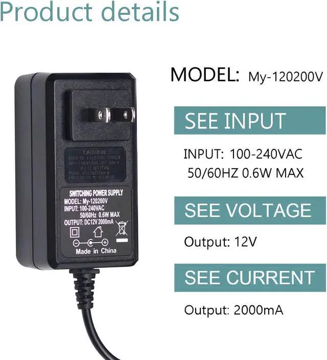 Input: AC 100V~240V 50/60Hz Output Voltage: DC 12V (constant voltage Max 2A Max 24W) DC connector: 5.5mm * 2.1 mm Package Include: 1 * 12V 2A Power Supply Adapter 12V 2A Switching Power Supply Adapter Wide Compatibility CCTV Camera, Audio Amplifier, HUB, Router and Low Voltage Single Color 3528/5050 LED Strip