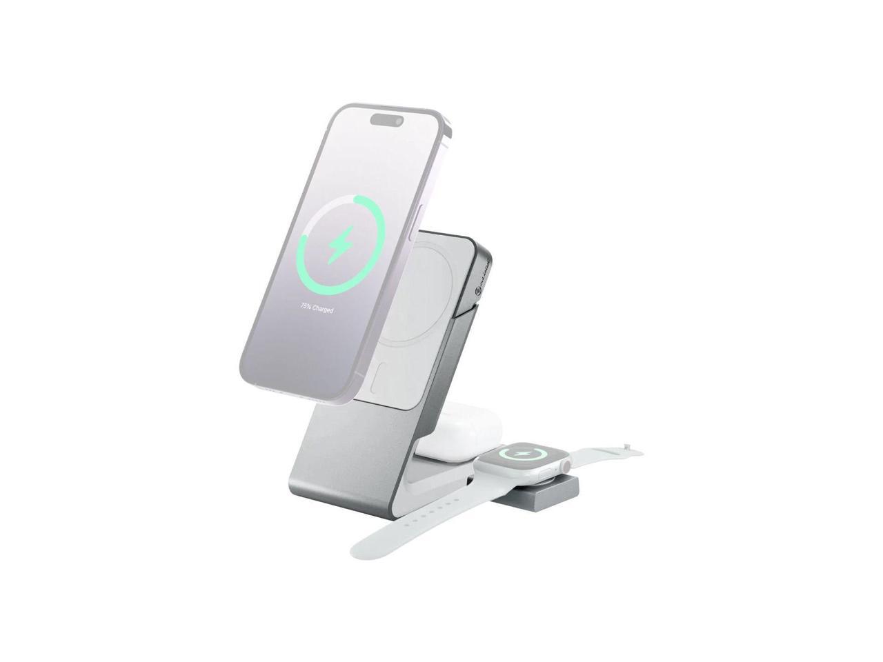 Matrix+ 3-in-1 Magnetic Wireless Charging Dock with universal compatibility offers safe, high speed and simultaneous charging for Magsafe and Qi compatible Phones, Airpods, Earbuds and Apple Watch.