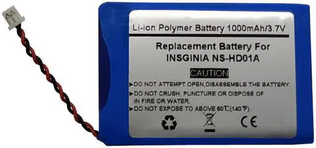 Battery Type: Li-ion Polymer battery Capacity: 1000mAh Nominal Voltage: 3.7V Pack Dimension: 5.5 x 34.5 x 52.0 mm Weight: 15g Working Temperature: Less than 60?(140?) Compatible Models: INSGINIA NS-HD01A