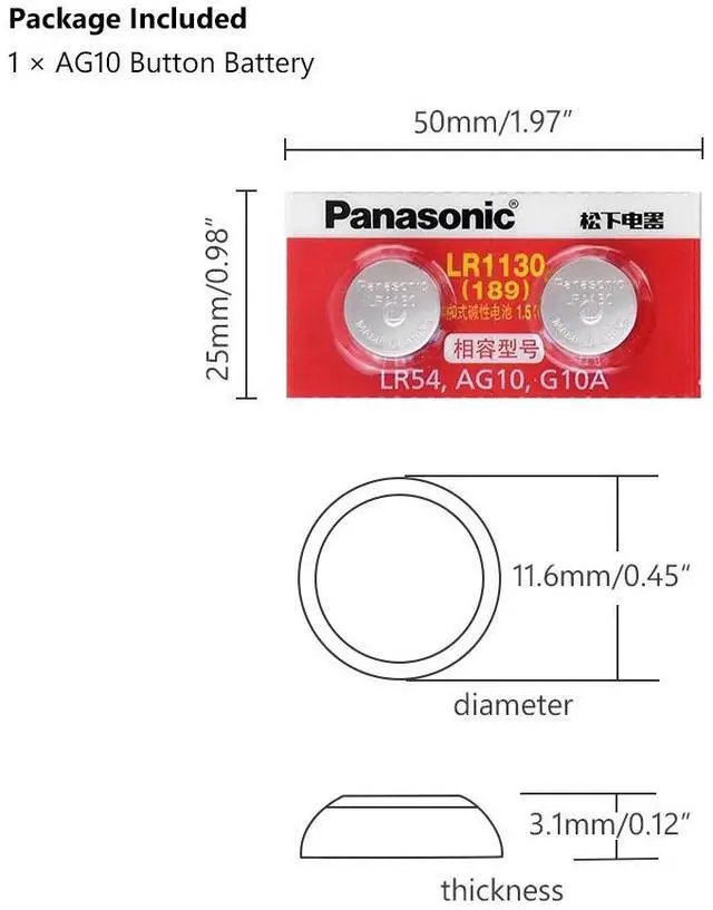 • 2PCS/lot Battery Cell 1.5V AG10 LR1130 Alkaline Button Battery AG10 389 LR54 SR54 SR1130W 189 LR1130