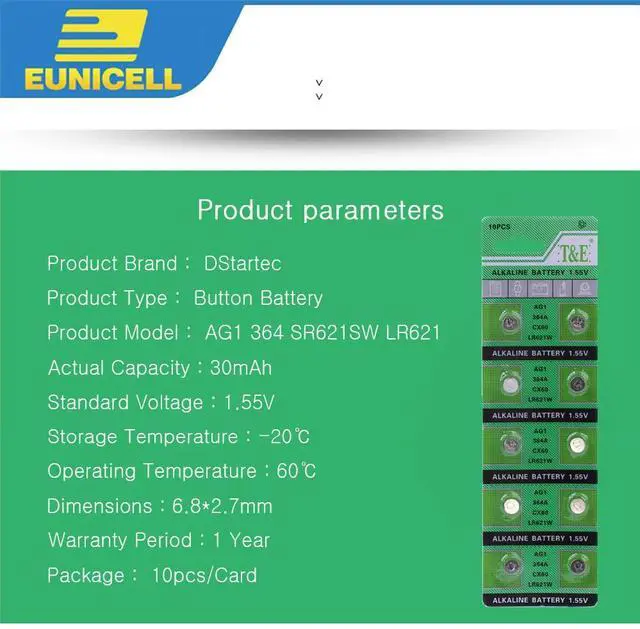• 10pcs Alkaline Cell Coin Battery 1.55V AG1 LR621 Button Batteries 364 164 531 SR621 SR621SW SR60 SP364 TR621 AG 1 For Watch Toys