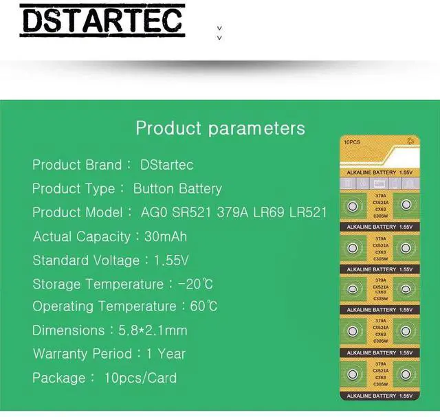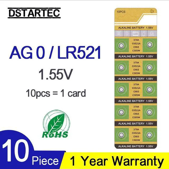 • 10PCS Button Battery 1.55V AG0 SR63 LR69 LR521 379A SR521SW GP379 D379 V379 V520 AG 0 Alkaline Button Cell Coin Batteries