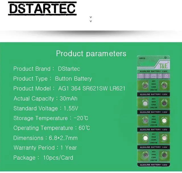 • 10pcs 30mAh 1.55V AG1 LR621 364 164 531 SR621 SR621SW SR60 SP364 TR621 Button Batteries For Watch Toys Remote Cell Coin Battery