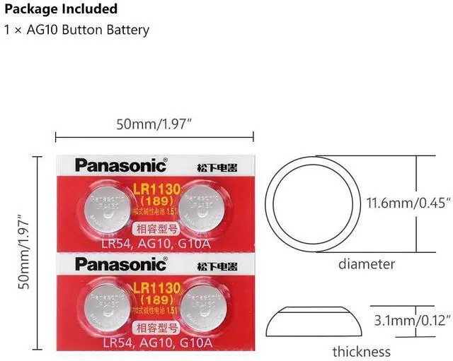 • 4Pcs 1.5V AG10 LR1130 Alkaline Button Battery For Watch Toys Coin Cell 189 SR54 GP390 LR54 SR54 SR1130W Button Batteries