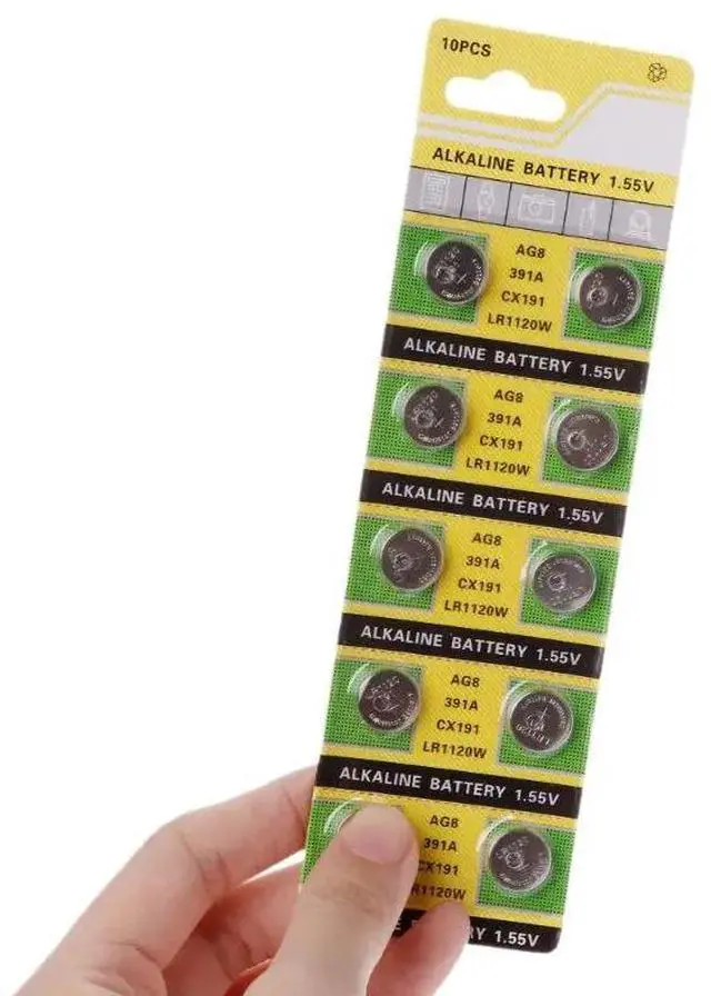 • 10PCS Watch Battery AG8 1.55V Li-ion Button Coin Cell Batteries LR1120 391 SR1120 191 LR55 Toys Remote Camera CPU